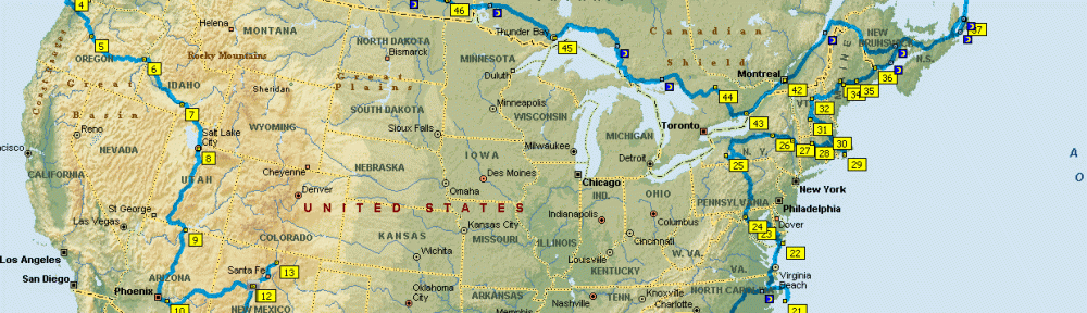 Above left is the most current itinerary, a counter-clockwise trip around the US and Canada. Parameters for the dates are mid-June graduation of Grandson Mitchell and the mid May opening of the Canadian Rockies.