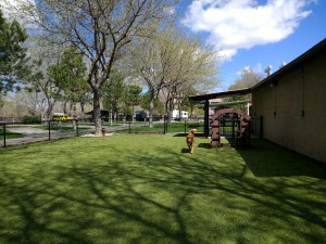 As you can see, the K9 park at the Salt Lake City KOA meets with Jamie’s approval. And Kinnon, too. In addition to the dog area, there is access to the walking trail along the Jordan River.