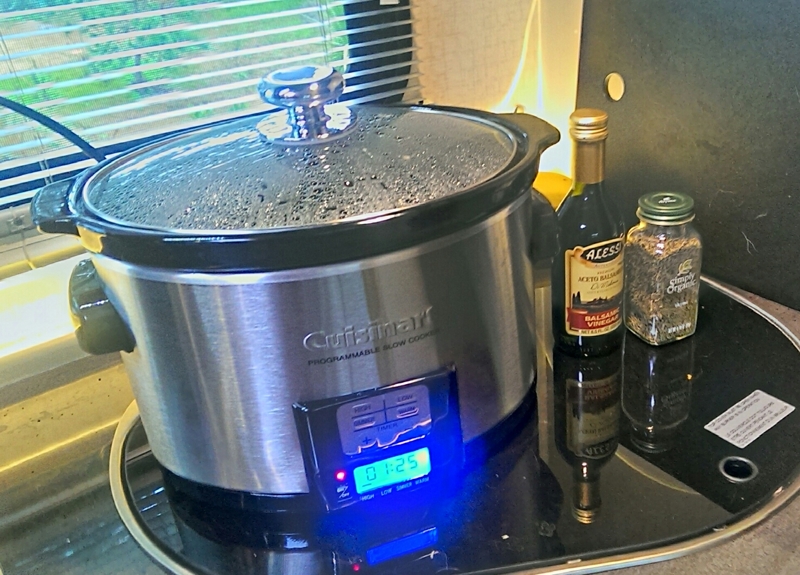 Crock PotOne of challenging yet fun things about a motor home is deciding where to put all the Stuff. Our Navion is smaller than a “small house” and we lived in our former View for six months, so arranging things is an important task in order to maintain space and sanity.